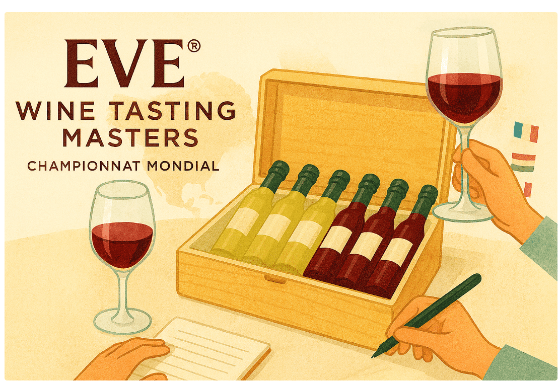 Vous avez toujours rêvé de tester vos compétences en dégustation à l’aveugle ? Le EVE® Wine Tasting Masters est fait pour vous. Accessible où que vous soyez, en français, anglais ou espagnol, ce championnat inédit rassemble des passionnés de vin du monde entier autour d’un même défi : identifier 6 vins à l’aveugle et expliquer votre raisonnement.